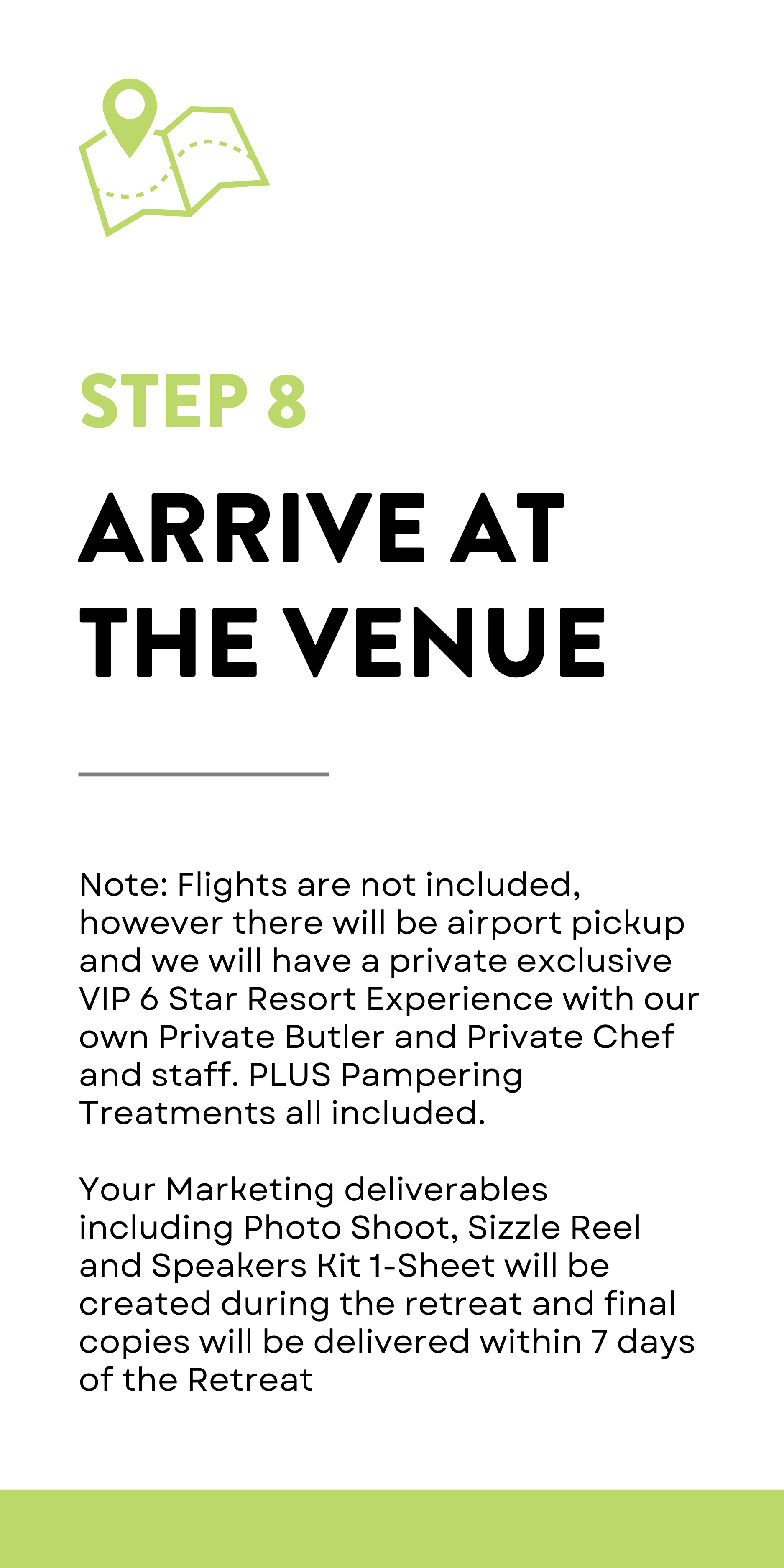 Receiving and signing off on completing marketing assets within 14 days of retreat completion